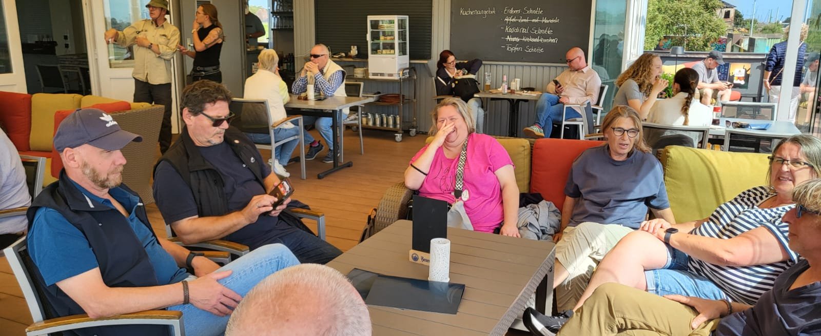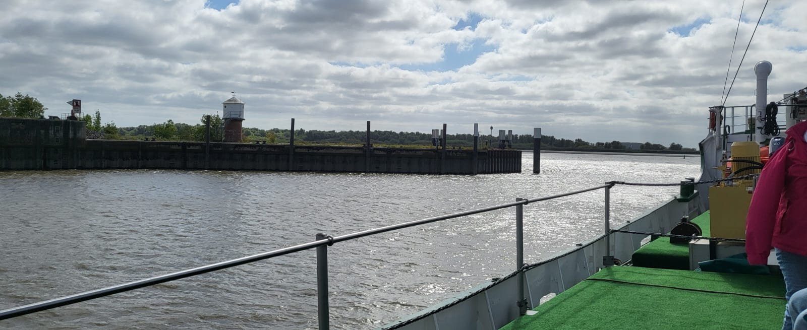 Auf dem Rückweg gab’s noch einen Abstecher über Hafen und Sperrwerk bis in die Elblounge Glückstadt. Gestärkt und zufrieden ging es dann zurück an Bord und heimwärts. Die Rückfahrt selbst war eher entspannt – viel geplaudert, viel gelacht, und zwischendurch noch ein kleiner Extrarundkurs vor Stadersand, damit die Greundiek genug Wasser unterm Kiel bekam.